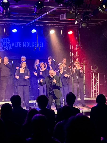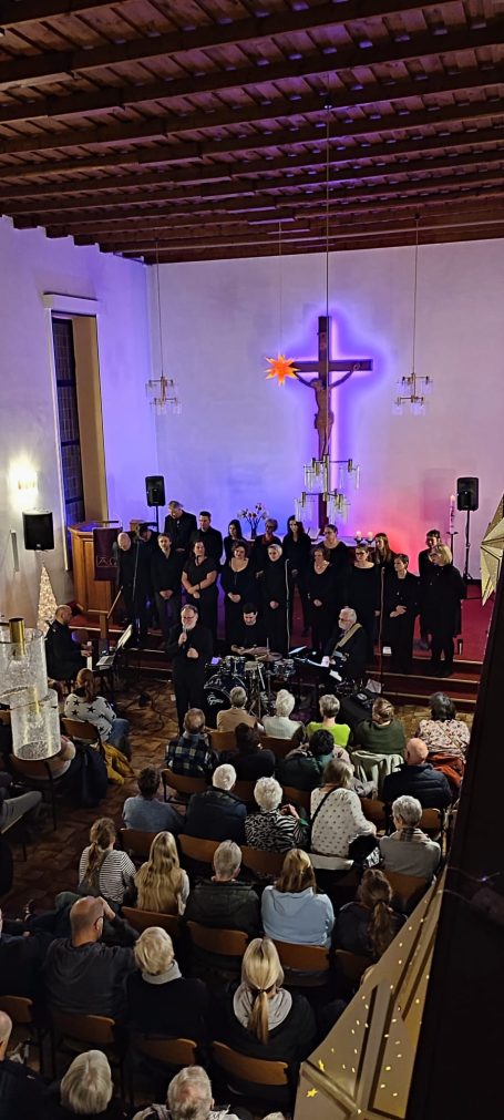 Der 20 köpfige, stimmgewaltige Chor tritt mit Solistinnen und Solisten, Piano, Bass und Schlagzeug sowie Tamburin/Handclaps und Gastmusikern, auf....